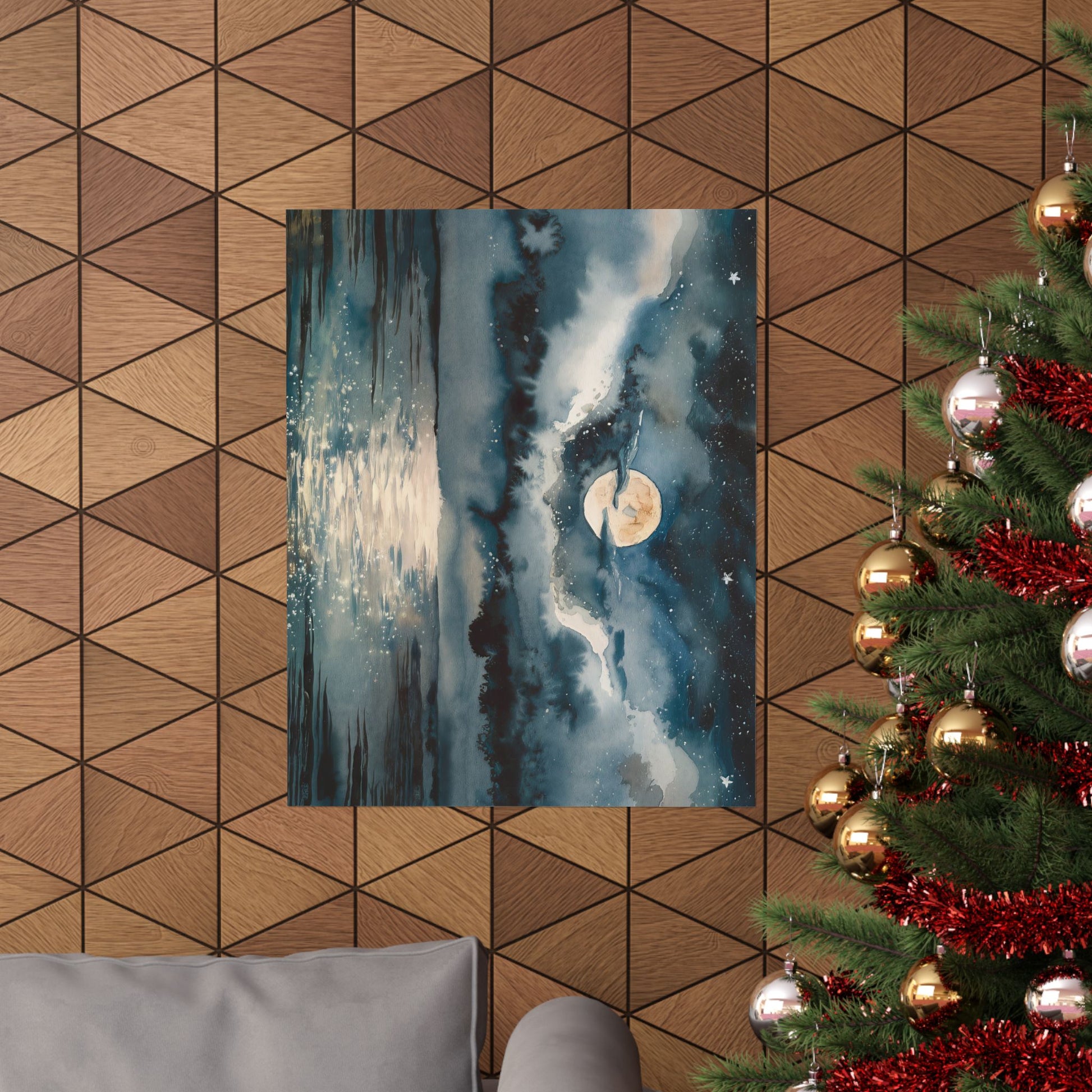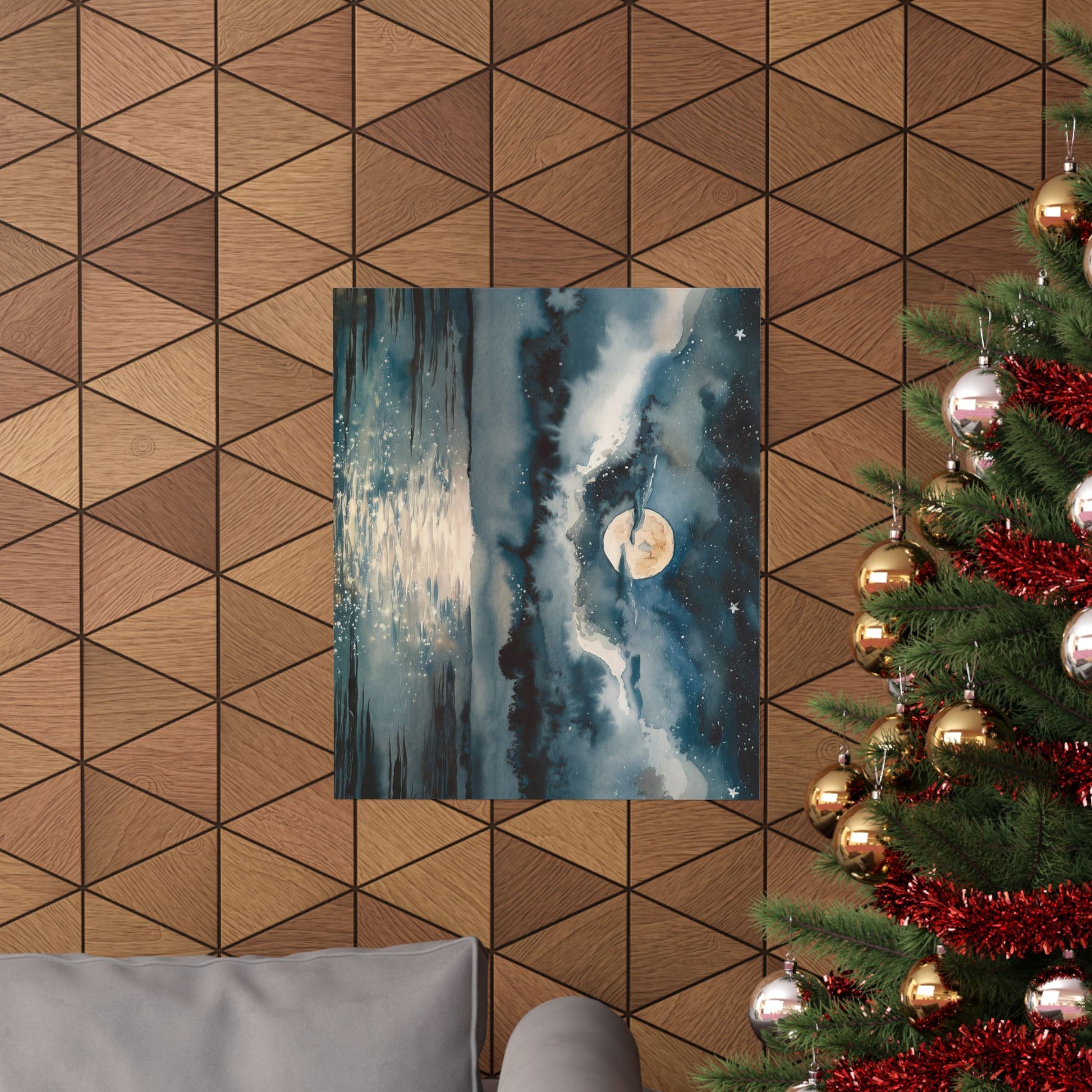 Full Moon Over Ocean Watercolor Poster