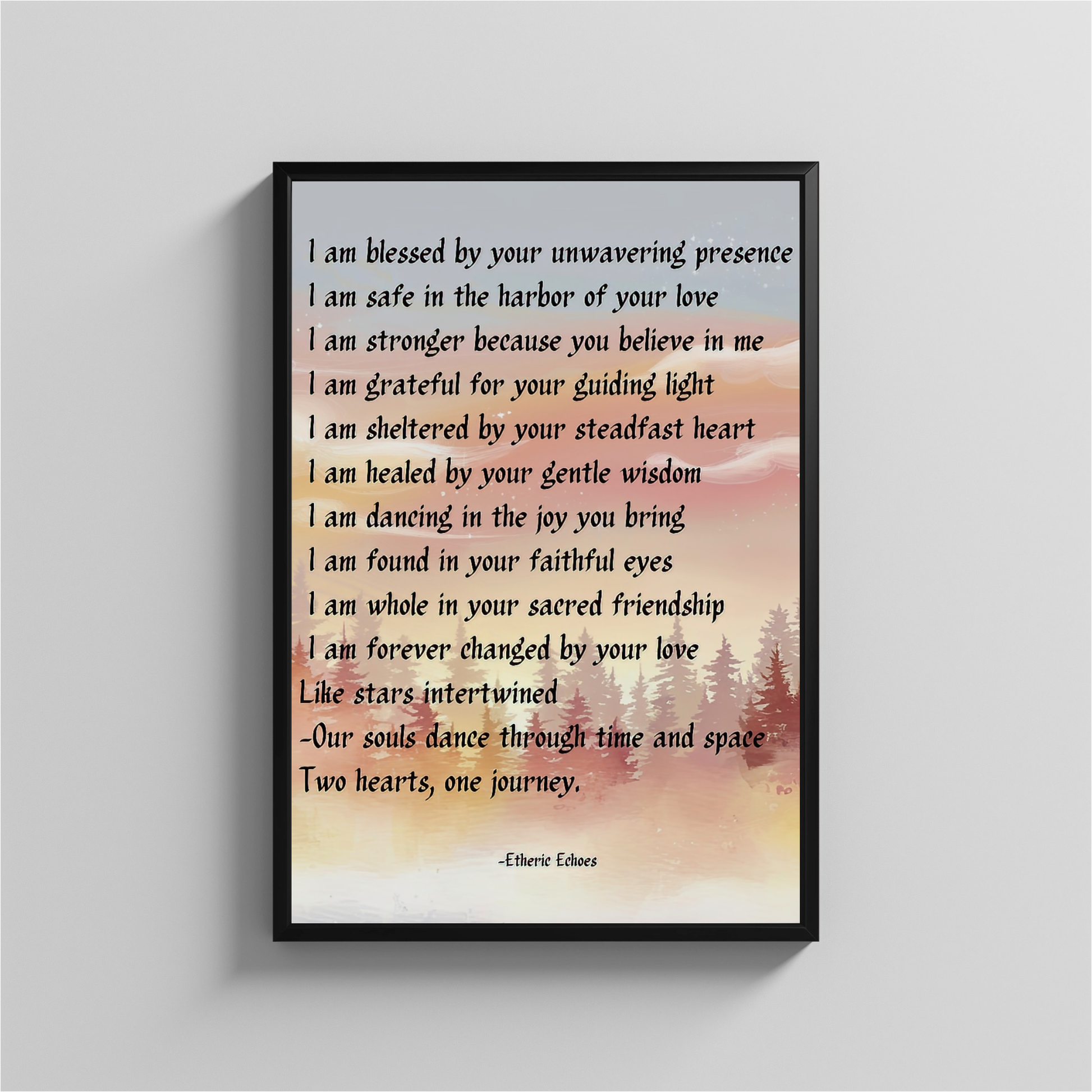 With its calming visuals and affirming words, the I Am Affirmation Guided by Love is more than just art; it’s a pathway to mindfulness and reflection. Hang it on your wall to create an uplifting atmosphere or gift it to someone who needs a reminder of their inherent strength.