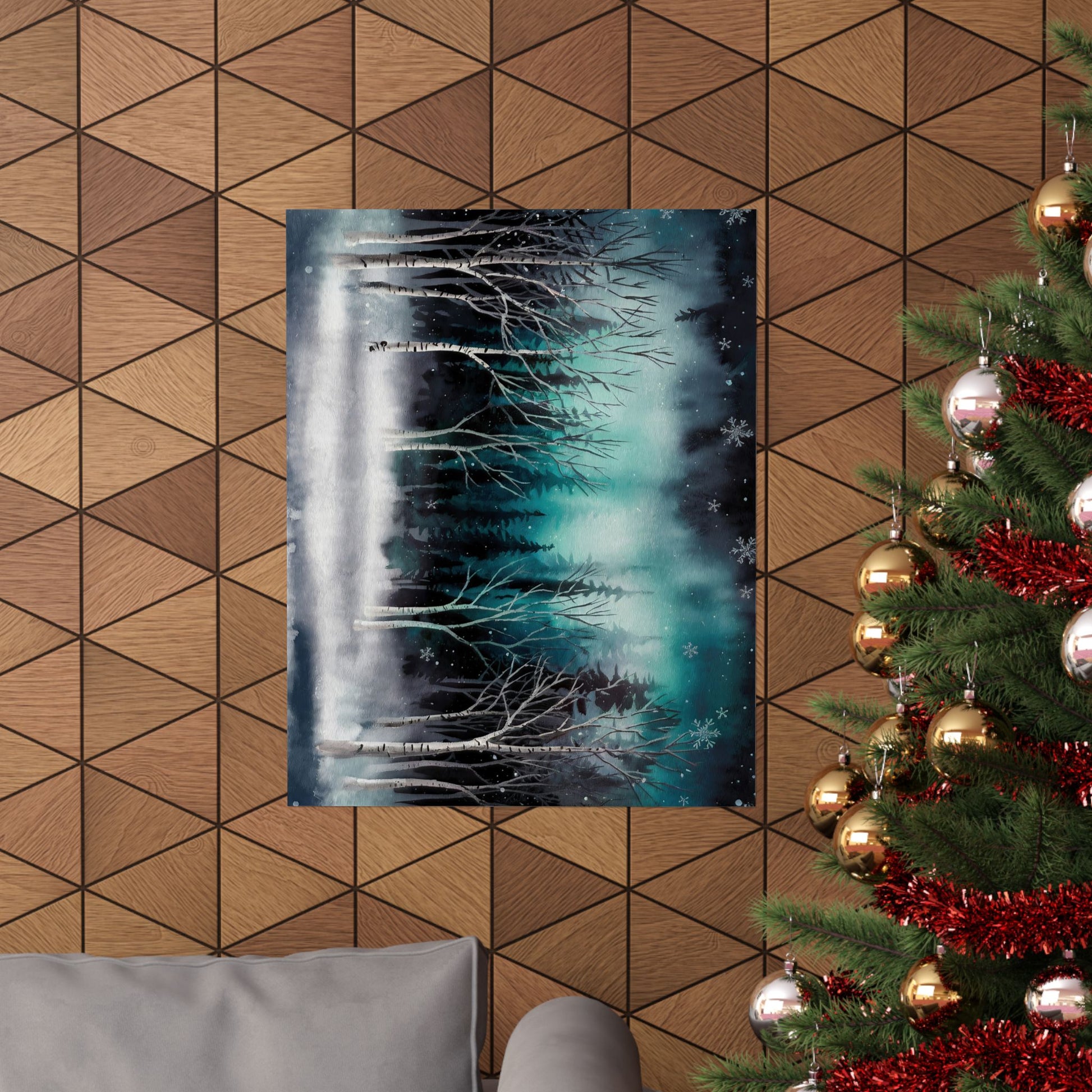 Winter Forest Snowfall Watercolor Poster