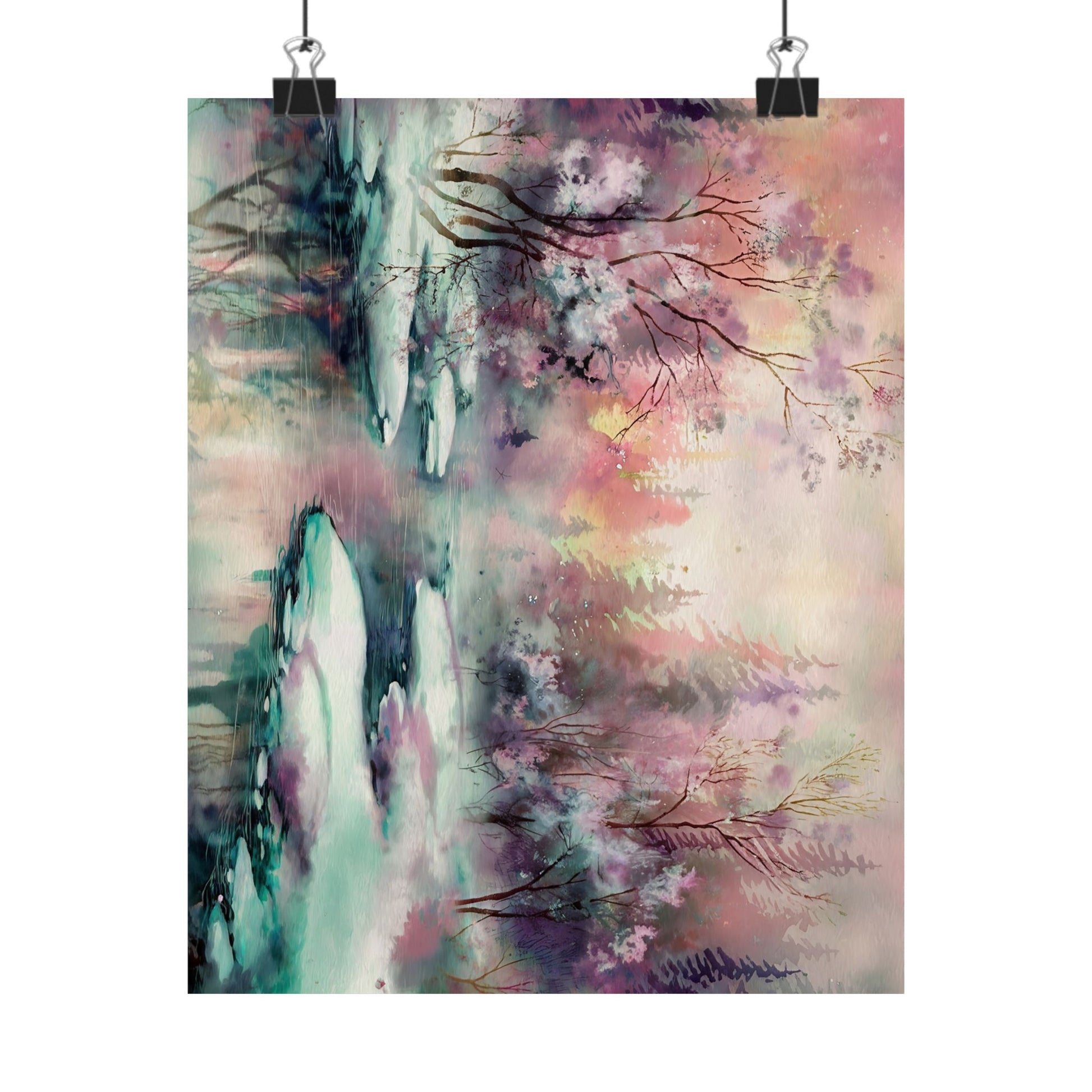 Winter Forest Stream Watercolor Poster